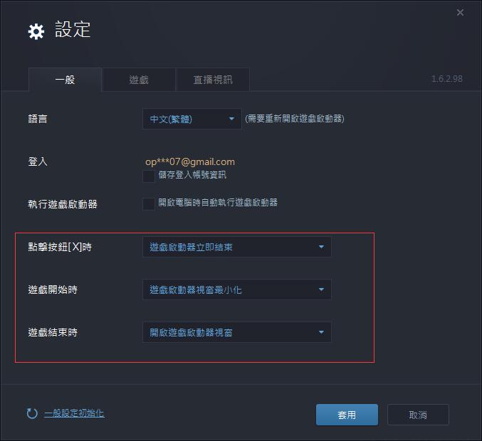 5、三個選項請選擇"遊戲啟動器立即結束",代表啟動遊戲後,自動關閉啟動器。